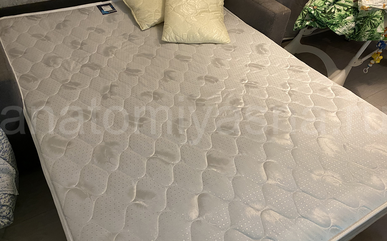Верхнее покрытие матраса жаккард, стеганый с синтепоном - высокопрочная ткань, состоящая из синтетических материалов с добавлением нитей из натуральных тканей с особым переплетением волокон. Синтетический жаккард может быть двойным (дублированным) или недублированным. Как правило, дублированный жаккард используют в качестве верхнего покрытия для матрасов, чехлов и наматрасников. Самой важной характеристикой ткани является его прочность и износостойкость.